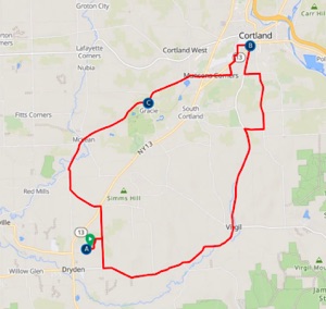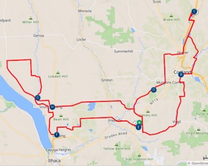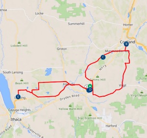 • 102 mile route: 5 rest stops - Cortland YMCA, Dwyer Park, TC3, Ithaca YMCA, Lansing Community Library